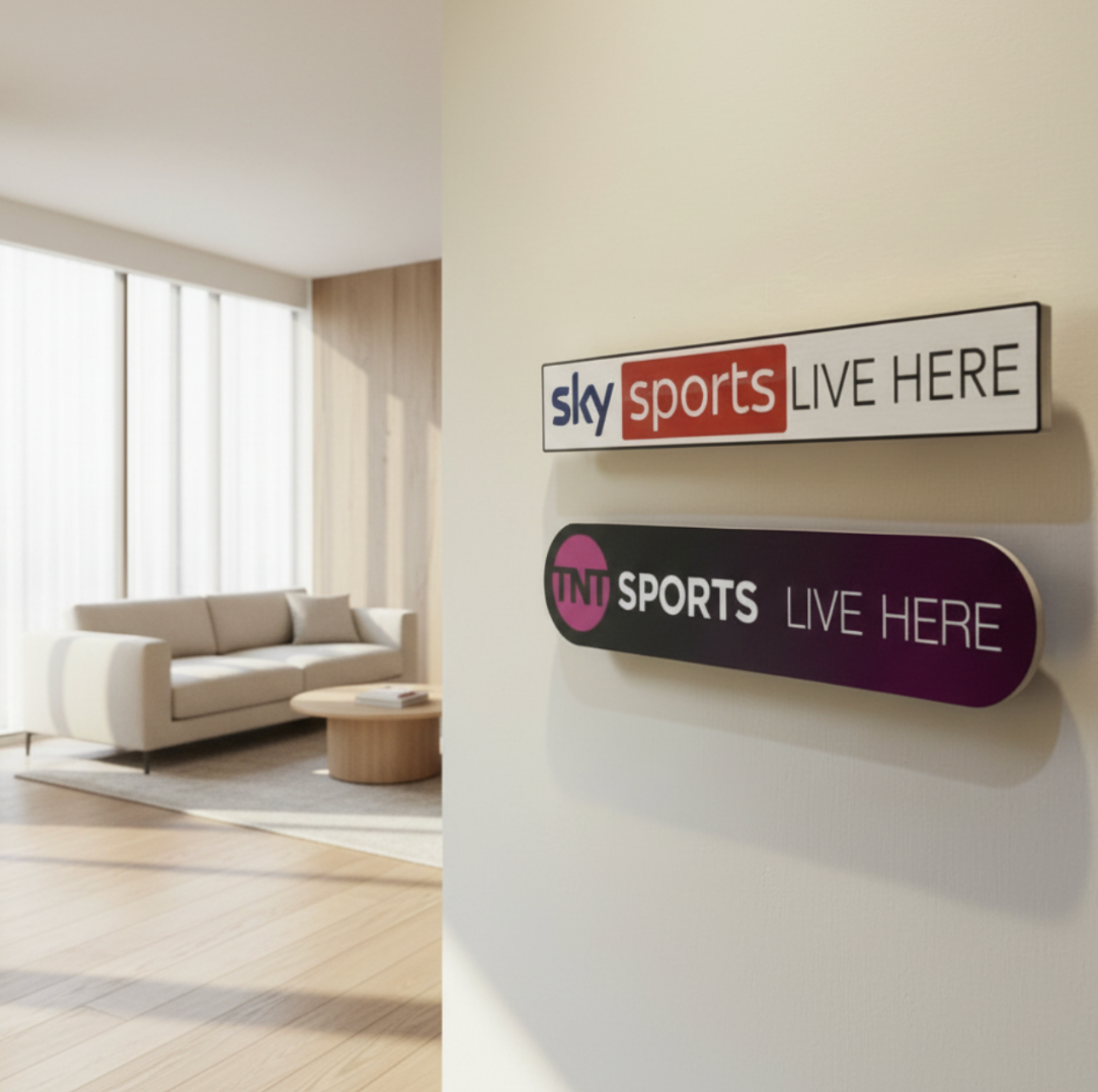 Handmade from premium wood and finished to the highest quality, these signs add instant atmosphere and a professional broadcast feel—turning any wall into the ultimate viewing zone